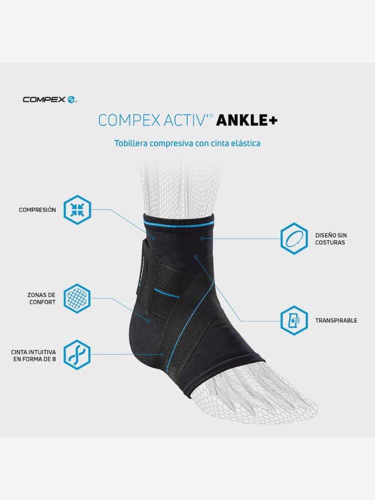 Compex Activ’® Ankle+ – Tobillera de Compresión con Correa en Ocho