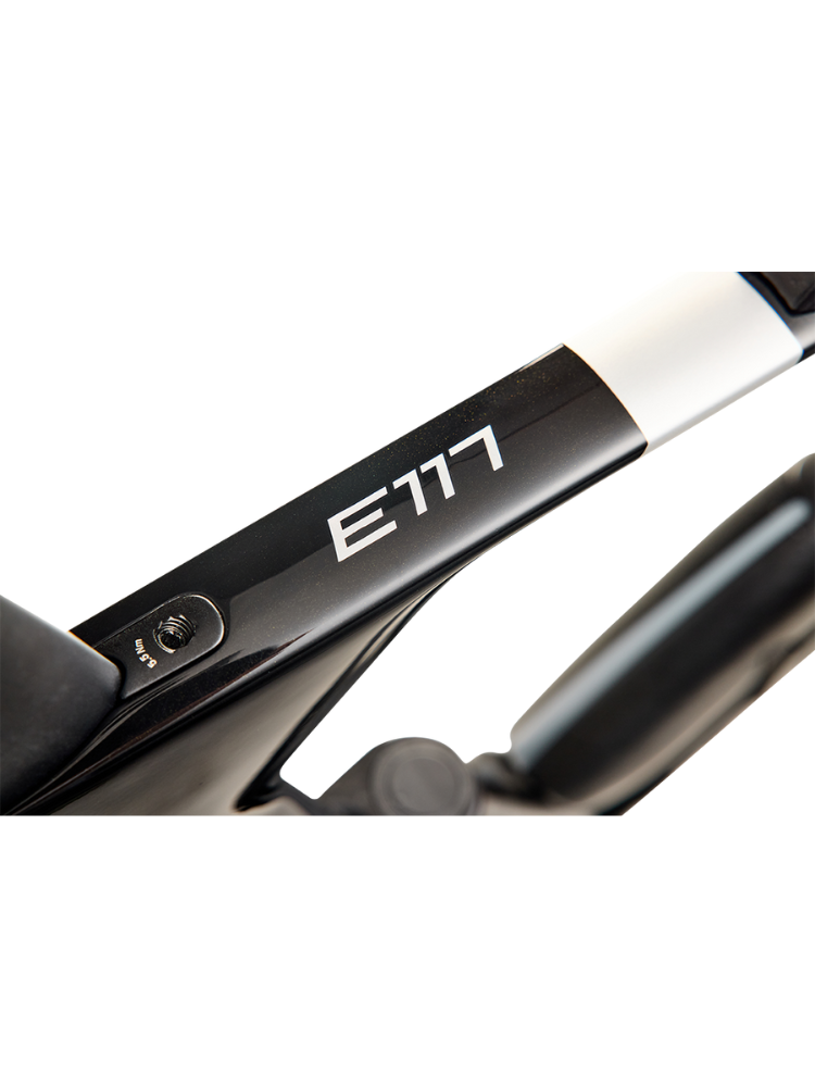 La E117 está disponible con grupo electrónico Shimano Di2, en sus versiones 105 (R7150) o Ultegra (R8150), ambos con transmisión de 12 velocidades, cambios precisos e instantáneos, y una interfaz limpia y libre de cables externos. Esta integración electrónica reduce el mantenimiento y mejora la fiabilidad en condiciones exigentes.